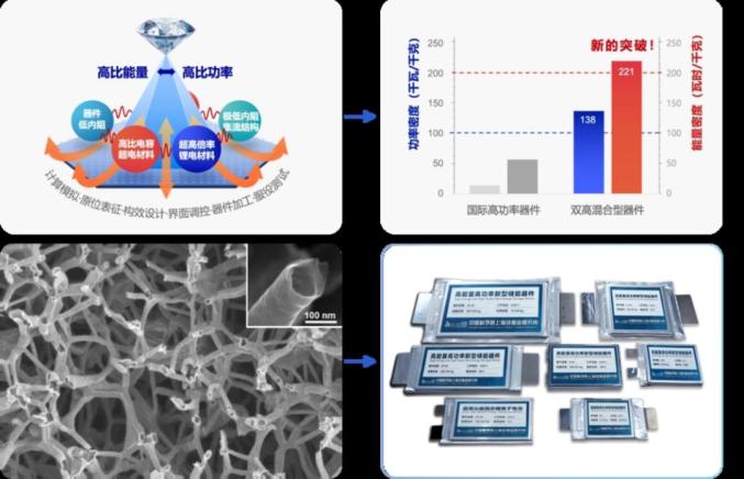 在國(guó)家和上海市科委科技項(xiàng)目的持續(xù)支持下,這一大獎(jiǎng)項(xiàng)目自主研發(fā)出雙高混合型儲(chǔ)能技術(shù),突破了能量密度>100Wh/kg且功率密度>100kW/kg的“雙百”目標(biāo),為高技術(shù)裝備、航空航天探測(cè)、新型電力系統(tǒng)電網(wǎng)調(diào)頻等領(lǐng)域應(yīng)用提供了創(chuàng)新答案。