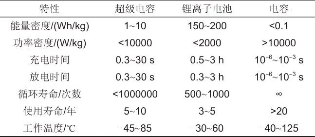 表1 超級電容特性