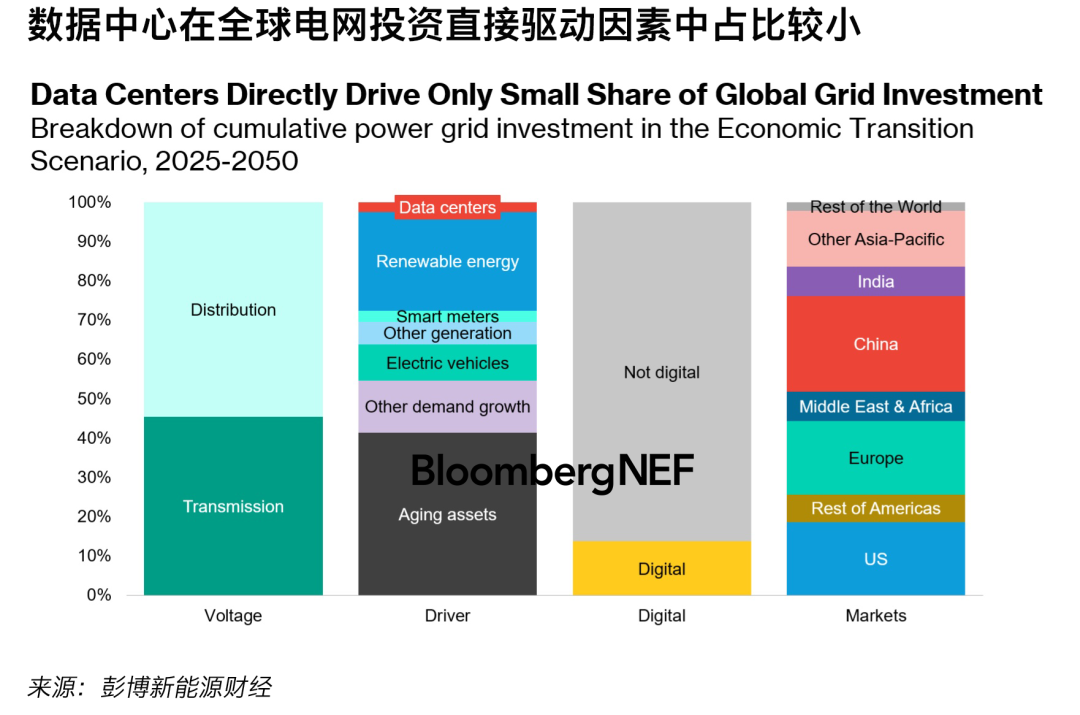 數(shù)據(jù)中心直接驅(qū)動的全球電網(wǎng)累計投資份額
