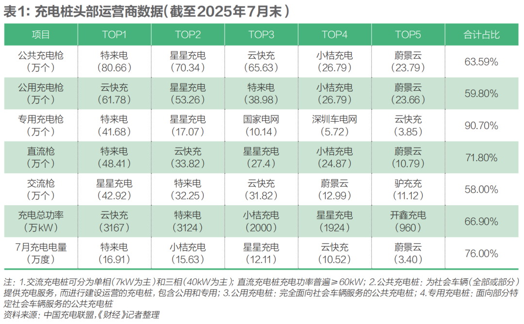 而充電站市場,根據(jù)國家能源局數(shù)據(jù),規(guī)模以上的充電運營服務商中,民營企業(yè)占比超過80%。根據(jù)充電聯(lián)盟的數(shù)據(jù),截至2025年7月,公共充電設施運營商的前五名分別是特來電、星星充電、小桔、云快充、蔚景云,均為民營企業(yè)。