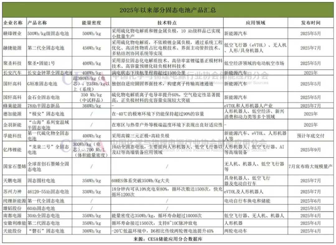 2025年以來(lái),固態(tài)電池技術(shù)在技術(shù)上實(shí)現(xiàn)了新的突破,包括材料體系創(chuàng)新升級(jí)、生產(chǎn)工藝革新、能量密度突破500Wh/kg并向更高方向邁進(jìn)等。