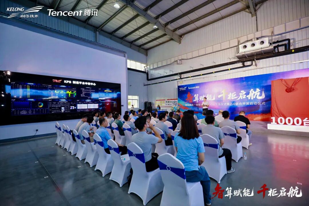 儀式前,雙方就行業(yè)發(fā)展、產(chǎn)品技術(shù)演進、流程化自檢及國際化業(yè)務(wù)等共同關(guān)心的話題進行了深入交流。隨后,騰訊團隊一行參觀了科華漳州智能制造工廠的彈性直流一體柜1.0生產(chǎn)線,實地考察設(shè)備生產(chǎn)流程與SOP自檢平臺的應用情況,并在產(chǎn)線現(xiàn)場共同見證了1.0版本第1000臺產(chǎn)品的交付以及2.0版本聯(lián)合開發(fā)的正式啟動。
