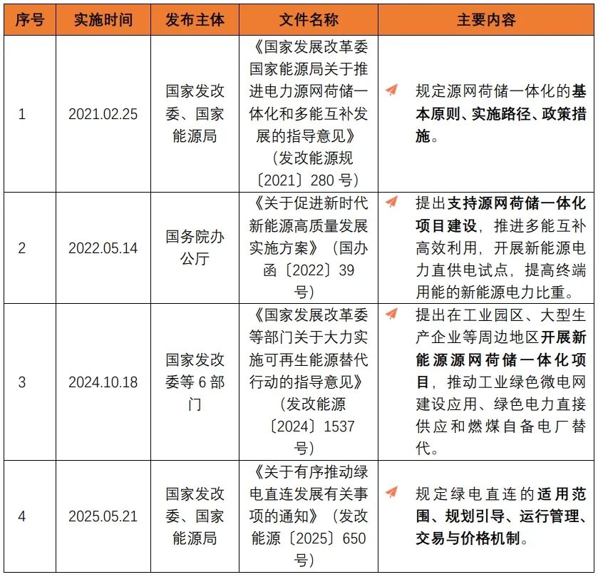 國家層面,2021年2月,國家發(fā)改委、國家能源局發(fā)布的《關(guān)于推進(jìn)電力源網(wǎng)荷儲一體化和多能互補(bǔ)發(fā)展的指導(dǎo)意見》(發(fā)改能源規(guī)〔2021〕280號)首次規(guī)定源網(wǎng)荷儲一體化的基本原則、實(shí)施路徑、政策措施。此后,國務(wù)院辦公廳、國家發(fā)改委、國家能源局等部門陸續(xù)發(fā)布一系列關(guān)于支持源網(wǎng)荷儲一體化項(xiàng)目發(fā)展的相關(guān)政策或者規(guī)范性文件。