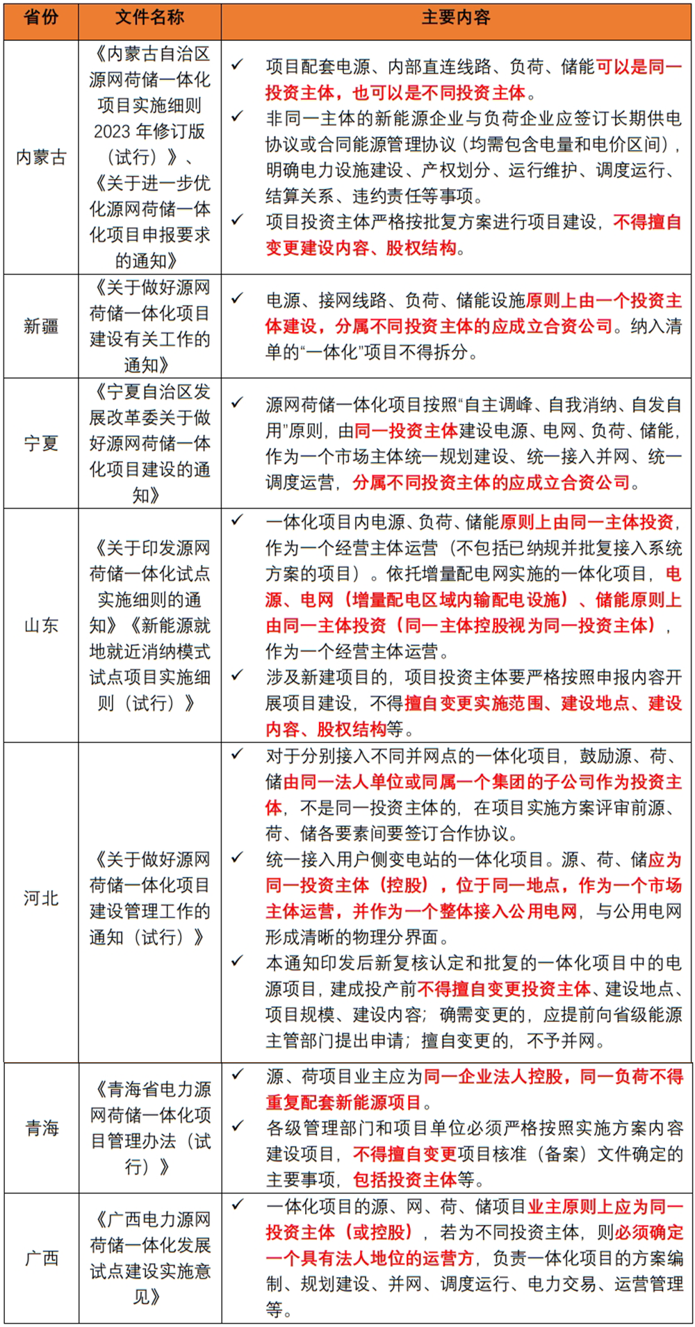 地方層面,目前大多規(guī)定:一體化項(xiàng)目作為獨(dú)立市場主體,按照相關(guān)要求參加電力市場交易,列示如下: