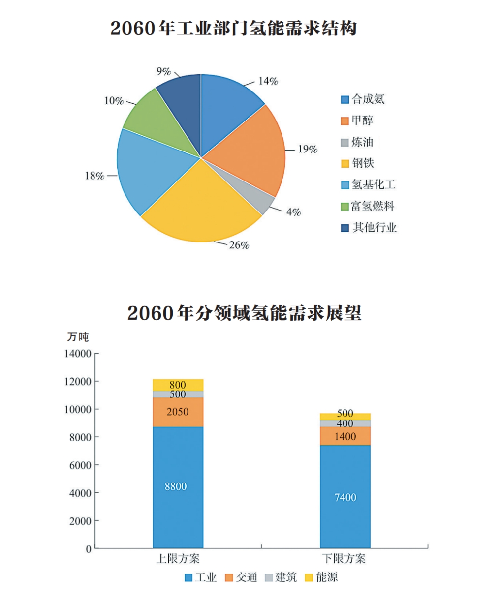 實(shí)現(xiàn)碳中和情景下,2060年建筑部門氫能需求為400萬~500萬噸、能源部門氫能需求為500萬~800萬噸。2060年我國氫能需求總量在9700萬~12150萬噸。