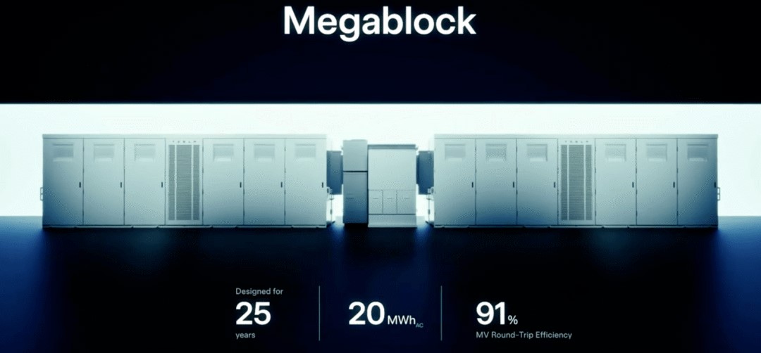 其最新推出的Megapack 3單體容量較上一代的3.9 MWh提升至5MWh,該產(chǎn)品內(nèi)部集成了特斯拉自主研發(fā)制造的變壓器,而四套Megapack3則組成了一套20MWh的Megablock,具備25年運(yùn)行壽命(電池>1萬次循環(huán))。