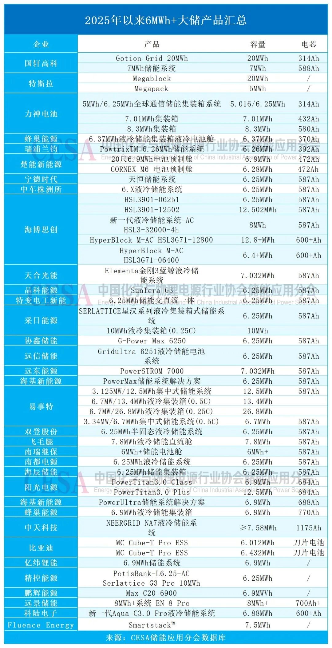 能量密度的提升始終是大儲(chǔ)技術(shù)發(fā)展的關(guān)鍵方向之一,從 2025 年市場(chǎng)推出的大儲(chǔ)新品來看,大容量電芯的應(yīng)用愈發(fā)廣泛。