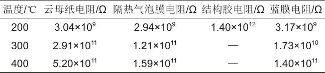 表1 絕緣材料在不同溫度下的電阻值