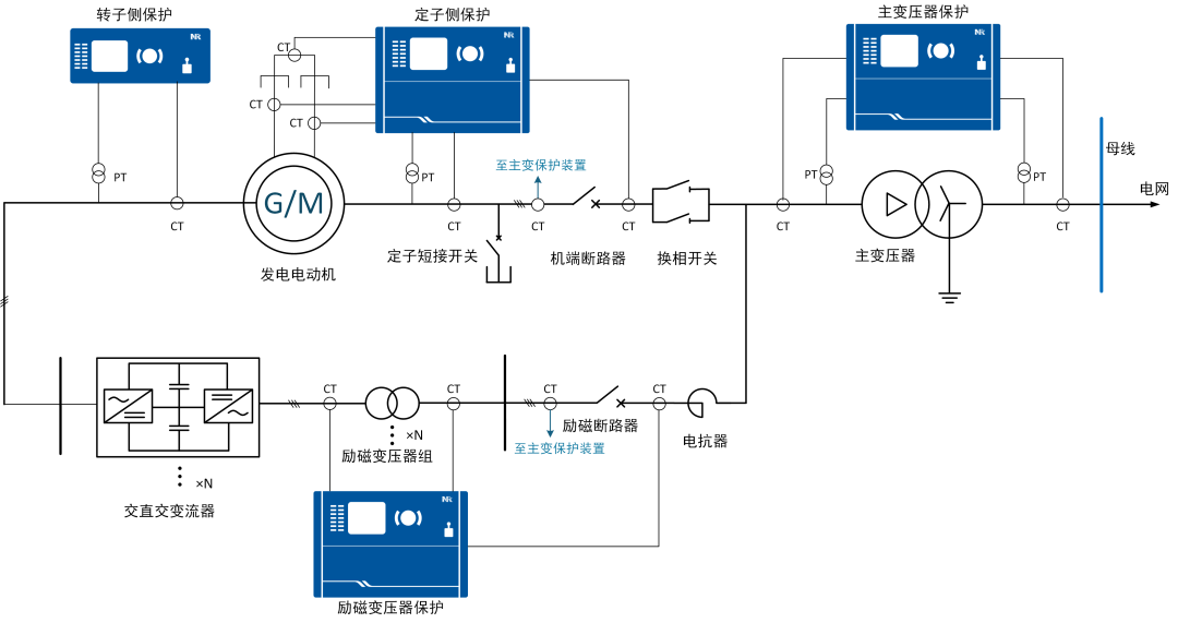 南瑞繼保研制的PCS變速抽水蓄能機(jī)組成套保護(hù)裝置集成比率制動(dòng)式分支環(huán)流諧波、基于光學(xué)互感器的轉(zhuǎn)子繞組裂相橫差等保護(hù),有效提高轉(zhuǎn)子繞組內(nèi)部故障下保護(hù)靈敏度;通過(guò)基于坐標(biāo)變換與正交運(yùn)算的極低頻電氣量算法,多元數(shù)據(jù)協(xié)同校驗(yàn)的機(jī)組運(yùn)行工況自動(dòng)辨識(shí)方法,顯著提升保護(hù)的速動(dòng)性與可靠性;提出零序電壓相量與頻譜特征映射的定轉(zhuǎn)子接地故障定位方法,大幅縮短故障排查時(shí)間,保障機(jī)組持續(xù)穩(wěn)定運(yùn)行,提升電網(wǎng)對(duì)新能源的消納能力。