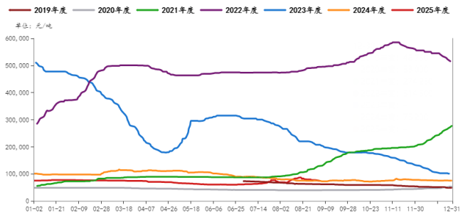 現(xiàn)貨合同:所有企業(yè)的現(xiàn)貨銷售,折價(jià)比例18-20%,隨市場波動(dòng),2025年Q4價(jià)格700-780美元/噸,為最低水平。