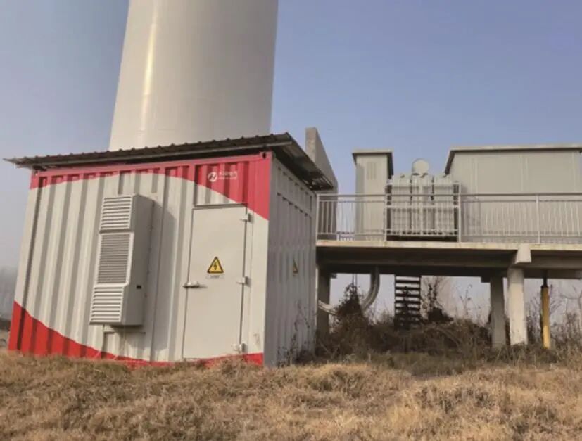 目前我國已有多個(gè)“一機(jī)一儲(chǔ)”項(xiàng)目示范。例如在廣東陽江雷平風(fēng)電場的“一機(jī)一儲(chǔ)”項(xiàng)目中,采用100 kW/15 s超級(jí)電容+100 kW/200 kWh鋰電池的混合儲(chǔ)能系統(tǒng),能有效抑制風(fēng)機(jī)輸出功率波動(dòng),并且在電網(wǎng)頻率出現(xiàn)偏差時(shí),超級(jí)電容可以快速響應(yīng),提供或吸收功率,幫助電網(wǎng)恢復(fù)到額定頻率。四川會(huì)東龍海風(fēng)電場的“一機(jī)一儲(chǔ)”項(xiàng)目中,600 kW/7.77 kWh超級(jí)電容儲(chǔ)能系統(tǒng)與4.8 MW/9.6 MWh鋰電池儲(chǔ)能系統(tǒng)配合,可實(shí)現(xiàn)一次調(diào)頻、AGC等功能。