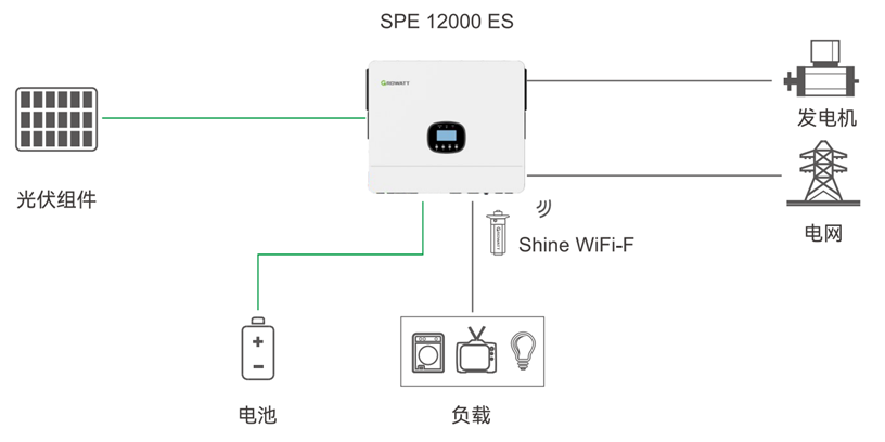 ② 設備要求:柴油發(fā)電機功率需匹配負載總功率+電池充電功率(例:負載5kW,電池充電3kW,發(fā)電機功率≥8kW)。古瑞瓦特SPE系列離網(wǎng)儲能逆變器支持柴發(fā)接入功率接口,可實現(xiàn)發(fā)電機與光儲系統(tǒng)的無縫切換,免去外部切換設備的成本。