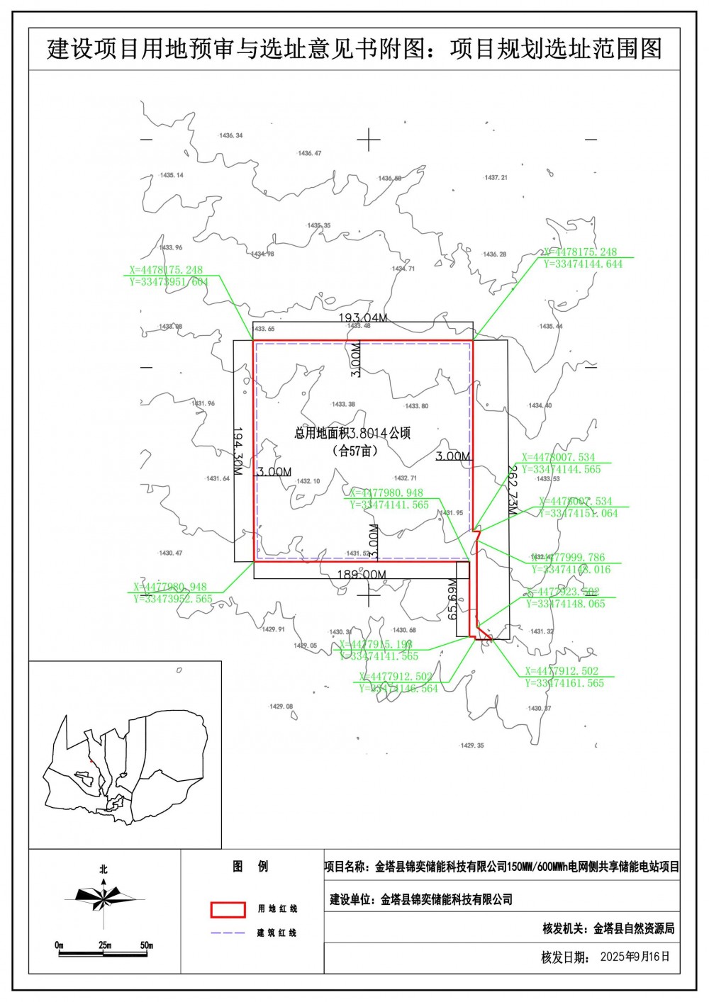 金塔縣自然資源局關(guān)于金塔縣錦奕儲(chǔ)能科技有限公司150mw/600mwh電網(wǎng)側(cè)共享儲(chǔ)能電站項(xiàng)目用地預(yù)選批前公示