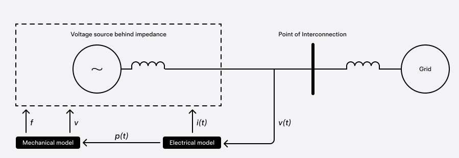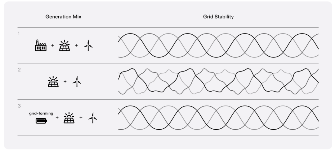 構(gòu)網(wǎng)對(duì)電網(wǎng)穩(wěn)定性的貢獻(xiàn)很像汽車(chē)的減震器——它能抑制波動(dòng)并保持平穩(wěn)運(yùn)行,即使在擾動(dòng)期間也是如此。正如沒(méi)有減震器的車(chē)輛可能會(huì)失控一樣,沒(méi)有適當(dāng)阻尼的電網(wǎng)可能會(huì)經(jīng)歷停電。傳統(tǒng)上,基于化石燃料的同步發(fā)電機(jī)通過(guò)使用機(jī)械慣性和旋轉(zhuǎn)能量來(lái)穩(wěn)定電壓和頻率,從而執(zhí)行此構(gòu)網(wǎng)功能。構(gòu)網(wǎng)逆變器可以通過(guò)獨(dú)立建立和調(diào)節(jié)電網(wǎng)電壓和頻率,并亞周期響應(yīng)以抵消電網(wǎng)擾動(dòng),來(lái)實(shí)現(xiàn)相同的穩(wěn)定功能。