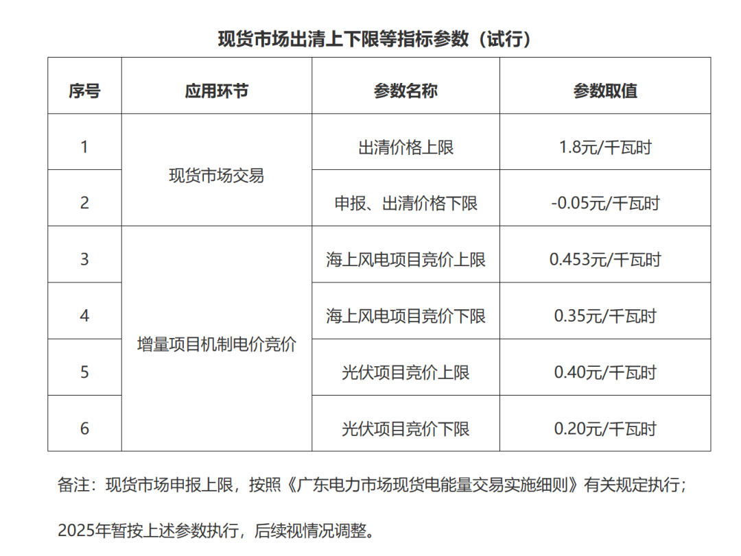 3.增量項(xiàng)目執(zhí)行差價(jià)結(jié)算機(jī)制的電量規(guī)模、機(jī)制電價(jià)和執(zhí)行期限。(1)增量項(xiàng)目范圍。2025年6月1日起投產(chǎn)且未納入過(guò)機(jī)制電價(jià)的新能源項(xiàng)目,不含2025年6月1日以前通過(guò)競(jìng)爭(zhēng)性配置等方式確定業(yè)主的海上風(fēng)電項(xiàng)目。預(yù)計(jì)從當(dāng)期競(jìng)價(jià)月起未來(lái)12個(gè)月內(nèi)投產(chǎn)的新能源項(xiàng)目,資料齊備的情況下可申請(qǐng)參與競(jìng)價(jià)。(2)競(jìng)價(jià)分類。初期綜合建設(shè)成本和運(yùn)行特性的差異,分為海上風(fēng)電項(xiàng)目、其他風(fēng)電項(xiàng)目和光伏項(xiàng)目三類(下文的“同類型”與之保持一致)。海上風(fēng)電項(xiàng)目和光伏項(xiàng)目分別組織競(jìng)價(jià),同一競(jìng)價(jià)場(chǎng)次的新能源項(xiàng)目執(zhí)行相同的機(jī)制電價(jià)水平和期限。(3)電量規(guī)模。每年新增納入機(jī)制的電量規(guī)模由廣東省發(fā)展改革委、廣東省能源局按照相關(guān)規(guī)定確定,并在競(jìng)價(jià)前予以公布。(4)競(jìng)價(jià)電量上限。集中式光伏和陸上風(fēng)電項(xiàng)目不參與機(jī)制電量競(jìng)價(jià)。在參與競(jìng)價(jià)的項(xiàng)目中,110千伏以下電壓等級(jí)項(xiàng)目的競(jìng)價(jià)電量申報(bào)比例上限取80%,其他項(xiàng)目的競(jìng)價(jià)電量申報(bào)比例上限原則上與存量項(xiàng)目機(jī)制電量比例上限保持一致。(5)機(jī)制電價(jià)上下限。競(jìng)價(jià)上限綜合考慮合理成本收益、綠色價(jià)值、電力市場(chǎng)供需形勢(shì)、用戶承受能力等因素確定,初期考慮成本因素、避免無(wú)序競(jìng)爭(zhēng)等設(shè)定競(jìng)價(jià)下限,具體見(jiàn)附表。(6)機(jī)制電價(jià)。競(jìng)價(jià)時(shí)按報(bào)價(jià)從低到高確定入選項(xiàng)目,機(jī)制電價(jià)原則上按入選項(xiàng)目最高報(bào)價(jià)確定、但不得高于競(jìng)價(jià)上限。價(jià)格相同時(shí),按照申報(bào)時(shí)間優(yōu)先確定排序,直至滿足競(jìng)價(jià)總規(guī)模。(7)執(zhí)行期限。增量項(xiàng)目機(jī)制電價(jià)的執(zhí)行期限為:海上風(fēng)電項(xiàng)目14年,光伏項(xiàng)目12年,到期后不再執(zhí)行機(jī)制電價(jià)。增量項(xiàng)目參與競(jìng)價(jià)成功后,未投產(chǎn)項(xiàng)目的執(zhí)行起始時(shí)間按照競(jìng)價(jià)時(shí)申報(bào)的投產(chǎn)時(shí)間確定;已投產(chǎn)項(xiàng)目按照入選時(shí)間確定。增量項(xiàng)目執(zhí)行機(jī)制電價(jià)前必須具備“四可”(可觀、可測(cè)、可調(diào)、可控)條件且已投產(chǎn)。(8)競(jìng)價(jià)機(jī)制。廣東省發(fā)展改革委、廣東省能源局委托廣東電力交易中心按照本方案在全省范圍內(nèi)統(tǒng)一組織開(kāi)展廣東增量新能源項(xiàng)目可持續(xù)發(fā)展價(jià)格機(jī)制競(jìng)價(jià)交易,競(jìng)價(jià)規(guī)則經(jīng)廣東省發(fā)展改革委、廣東省能源局批準(zhǔn)后實(shí)施。