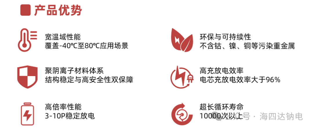 海四達(dá)鈉星依托母公司海四達(dá)電源30年二次電池開發(fā)的技術(shù)積淀,突破鈉電產(chǎn)業(yè)化瓶頸,以聚陰離子化合物體系為核心,通過材料創(chuàng)新與結(jié)構(gòu)優(yōu)化,在安全性,環(huán)境適應(yīng)性,循環(huán)壽命上形成顯著技術(shù)優(yōu)勢。