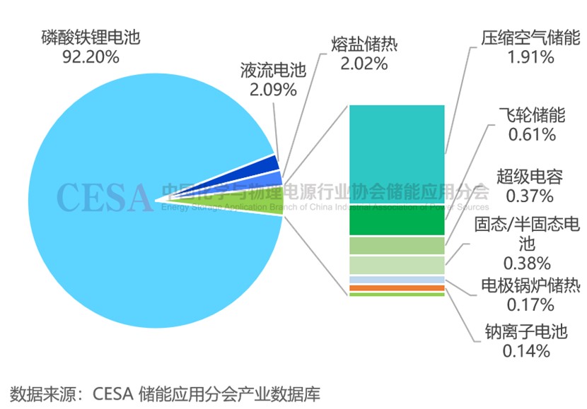 圖 2025年1-8月新型儲能各技術(shù)路線新增裝機(jī)功率占比