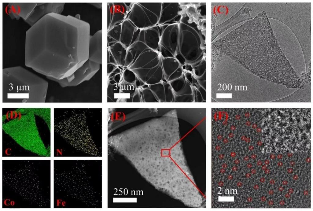 目前常用的鉑、銣等貴金屬催化劑雖性能優(yōu)異,卻存在功能單一、資源稀缺、成本高昂等問(wèn)題。而研究團(tuán)隊(duì)通過(guò)熱處理技術(shù),將三維氮摻雜碳材料轉(zhuǎn)化為超薄碳片,并嵌入鈷、鐵原子,研制出一種新型復(fù)合催化劑。測(cè)試表明,該材料可顯著提升氧還原與析氧反應(yīng)速率,性能優(yōu)于商用貴金屬催化劑。