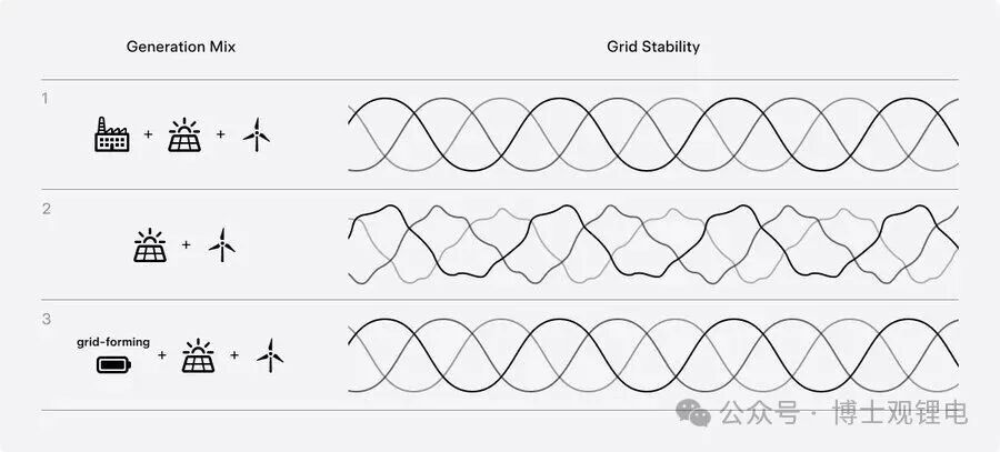 構網型技術對電網穩(wěn)定性的作用,猶如汽車的減震器——能夠抑制波動,確保系統(tǒng)平穩(wěn)運行,甚至在擾動發(fā)生時也能保持穩(wěn)定。正如沒有減震器的車輛可能失控,缺乏有效阻尼措施的電網也可能引發(fā)停電。傳統(tǒng)上,這一功能由化石燃料驅動的同步發(fā)電機通過機械慣性和旋轉能量來實現(xiàn),以穩(wěn)定電壓和頻率。而構網型逆變器能夠獨立建立并調節(jié)電網電壓和頻率,并在亞周期級別響應電網擾動,實現(xiàn)相同的穩(wěn)定效果。
