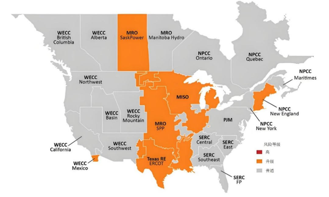 圖4:北美電力供應(yīng)可靠性風(fēng)險區(qū)域