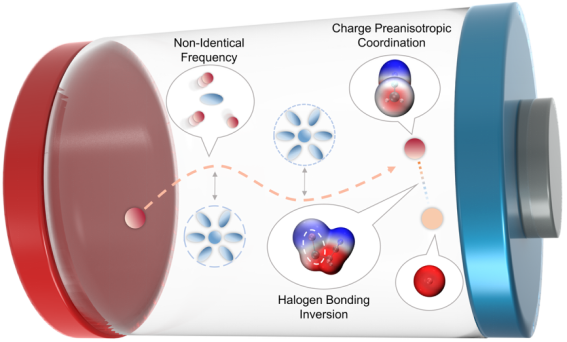 這個小分子如同一位“分子保鏢”,具備兩大“獨(dú)門絕技”。一是精準(zhǔn)識別與鎖定。通過“鹵鍵反演”的特殊化學(xué)作用,它能精準(zhǔn)地找到并“抓住”珍貴但脆弱的+1價碘離子,形成穩(wěn)定的可逆路徑。二是高速穿梭與巡航。由于其獨(dú)特的分子振動頻率與水分子不同,它不會被大量的水分子“糾纏”,能夠在電解液中“高速穿梭”,及時趕到需要保護(hù)的碘離子身邊。