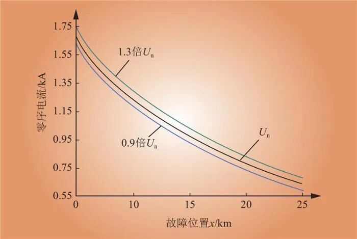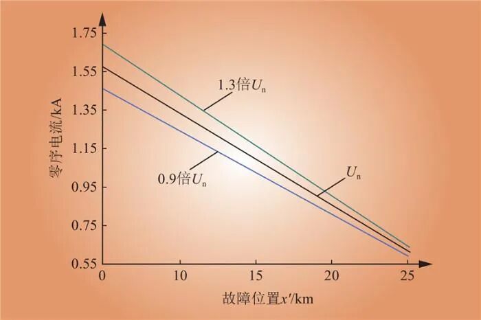 Fig.7 The relationship between the zero-sequence current flowing to the main grid side and the fault distance