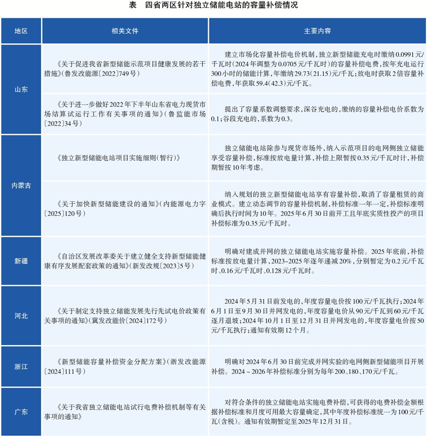 獨立儲能容量電費補償機制現(xiàn)狀