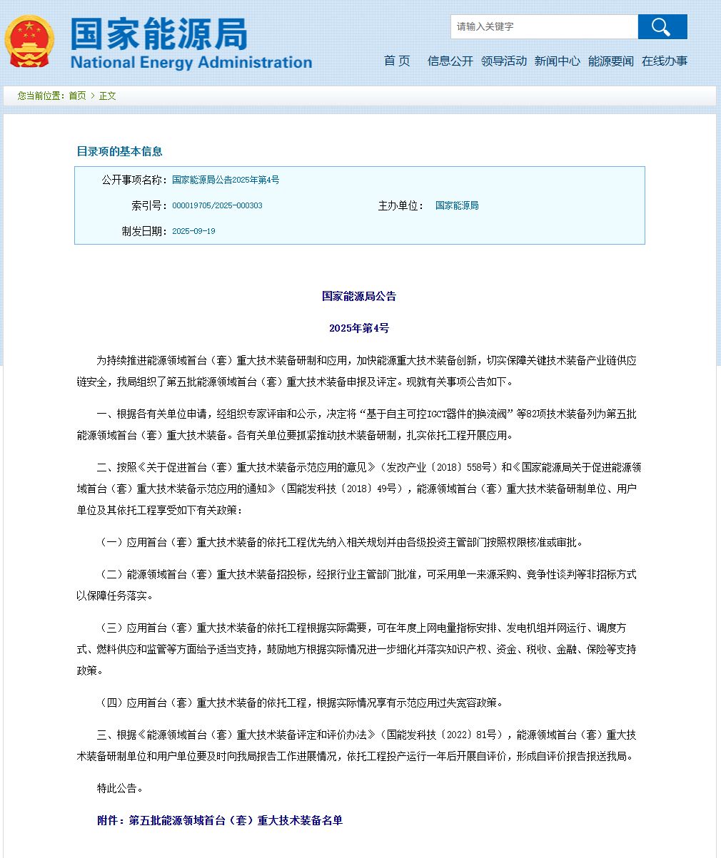 中國(guó)儲(chǔ)能網(wǎng)訊:9月26日,國(guó)家能源局正式公布第五批能源領(lǐng)域首臺(tái)(套)重大技術(shù)裝備名單,國(guó)網(wǎng)湖南綜合能源公司“面向配電網(wǎng)協(xié)同控制的智能集散式儲(chǔ)能成套裝備”成功入選。這是繼2024年該公司實(shí)現(xiàn)湖南省首臺(tái)(套)重大技術(shù)裝備零的突破后,再次獲得國(guó)家級(jí)認(rèn)可,標(biāo)志著該公司在配電網(wǎng)智慧儲(chǔ)能領(lǐng)域取得新突破。