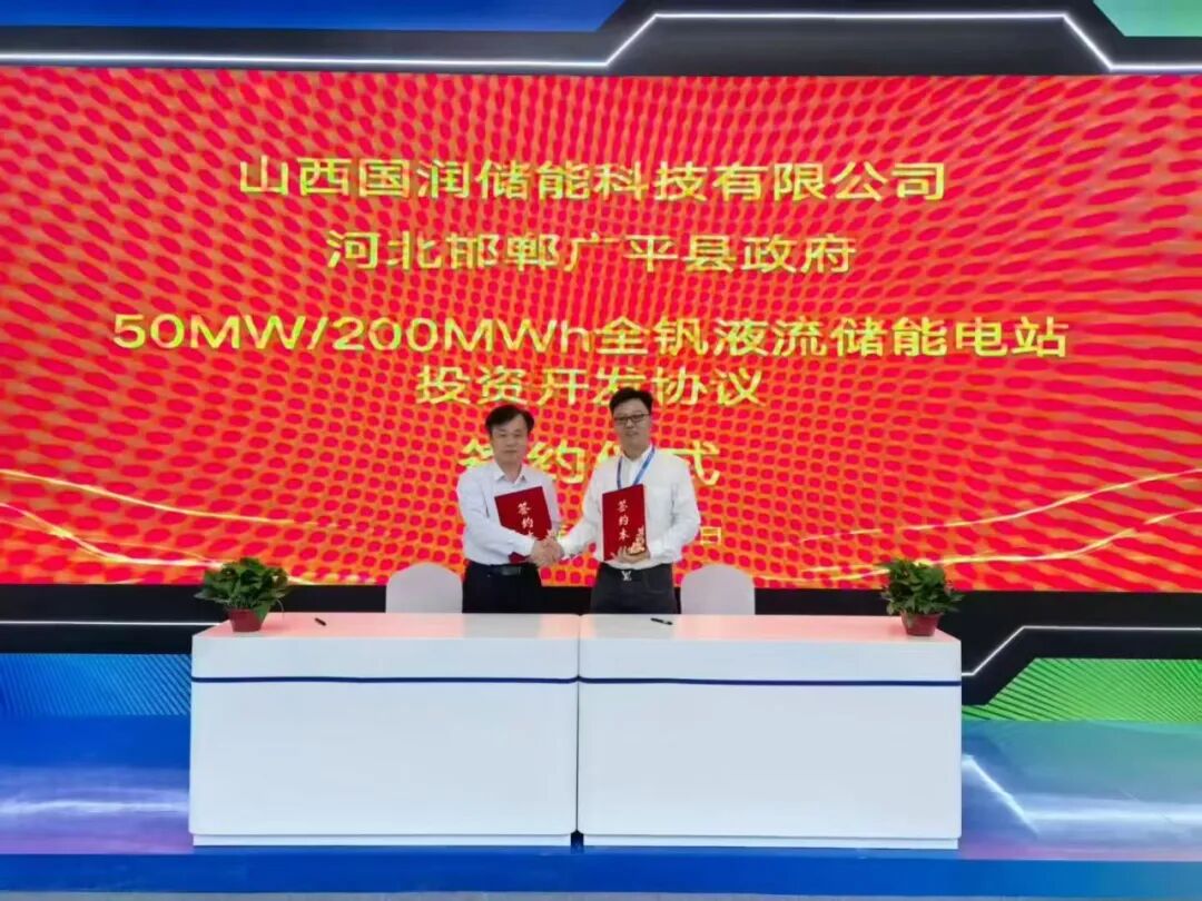 國潤儲能與綠智巨儲、騰業(yè)新能源、邯鄲廣平簽約,投建全釩液流儲能電站