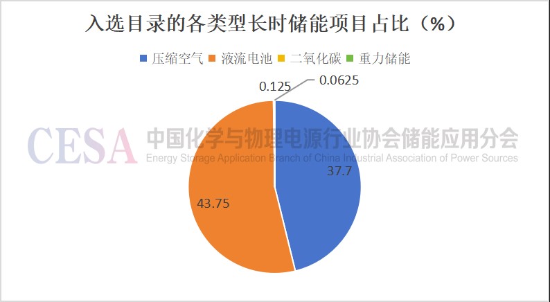 從技術(shù)類型看,入選的五批次長(zhǎng)時(shí)儲(chǔ)能項(xiàng)目中,液流電池儲(chǔ)能占比最高達(dá)43.75%,壓縮空氣占比達(dá)37.7%,排第二。