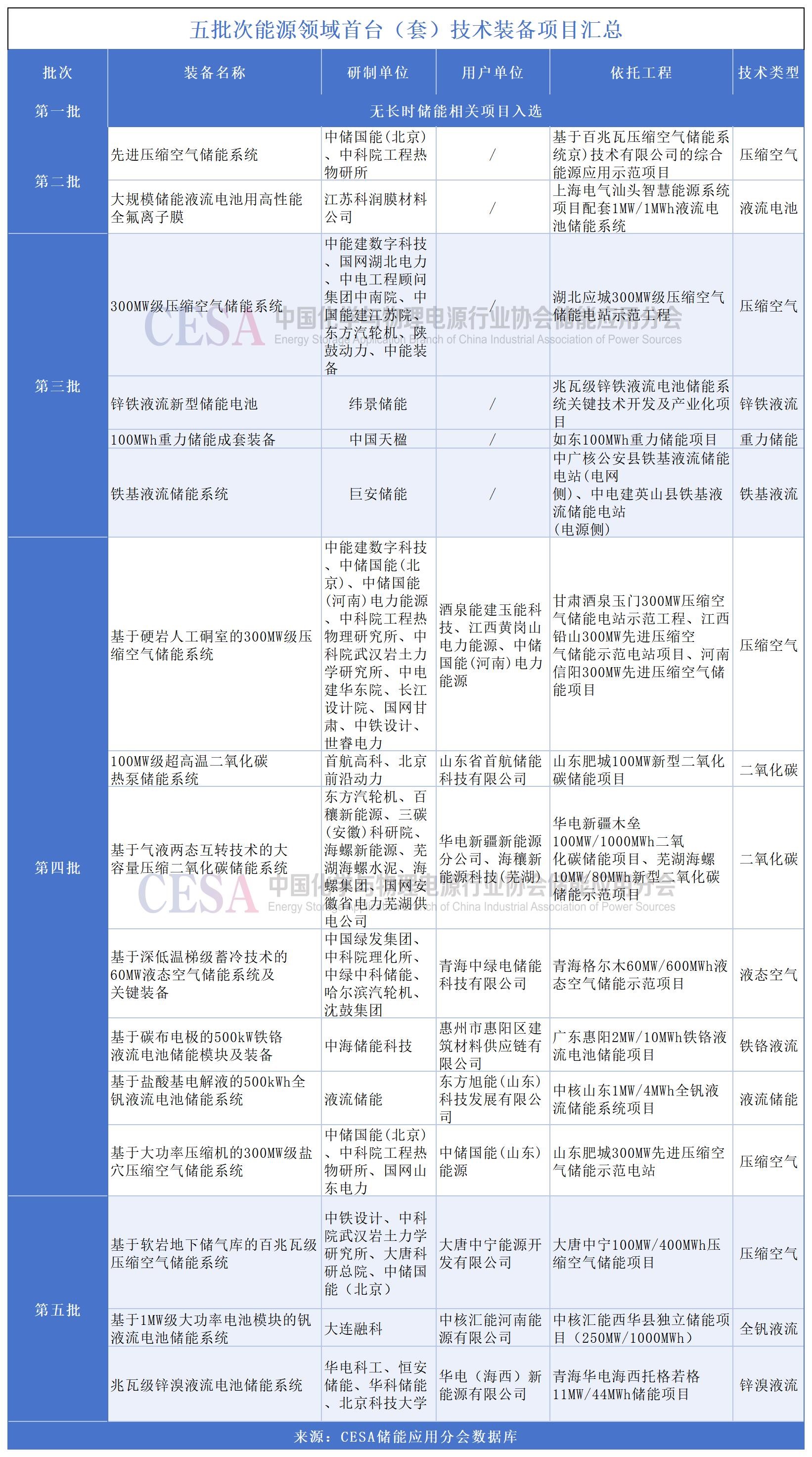 自2021年起,國(guó)家能源局陸續(xù)公示五批次能源領(lǐng)域首臺(tái)(套)技術(shù)裝備項(xiàng)目清單,從首批缺席,到第二批的兩項(xiàng)突破,再到第三批4個(gè)項(xiàng)目、第四批7個(gè)項(xiàng)目、第五批3個(gè)項(xiàng)目入選,長(zhǎng)時(shí)儲(chǔ)能穩(wěn)居重要地位,這五批次16個(gè)長(zhǎng)時(shí)儲(chǔ)能項(xiàng)目的落地,為這場(chǎng)能源革命和長(zhǎng)時(shí)儲(chǔ)能的發(fā)展按下了 "加速鍵"。