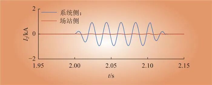 圖4 不對(duì)稱故障場(chǎng)景下系統(tǒng)側(cè)與場(chǎng)站側(cè)負(fù)序電流