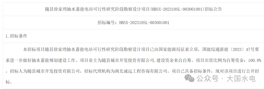 前期階段(2022-2023年)由隨縣城市開發(fā)投資有限公司作為項目前期業(yè)主,負責(zé)項目立項、勘察設(shè)計及可行性研究招標工作。中國電建集團中南勘測設(shè)計研究院有限公司以報價 158796700 元成功中標可行性研究階段勘察設(shè)計項目。