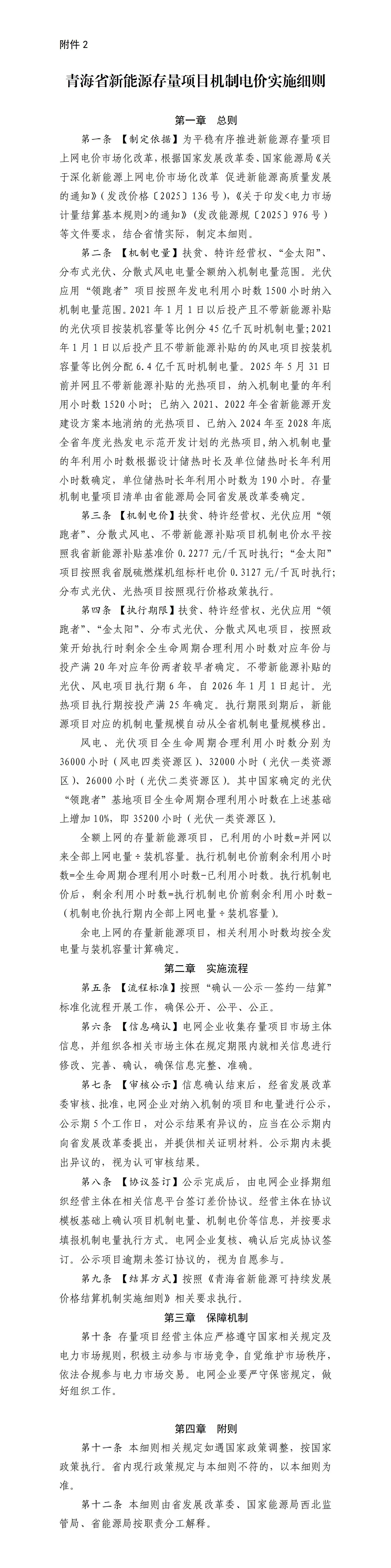2.青海省新能源存量項(xiàng)目機(jī)制電價(jià)實(shí)施細(xì)則