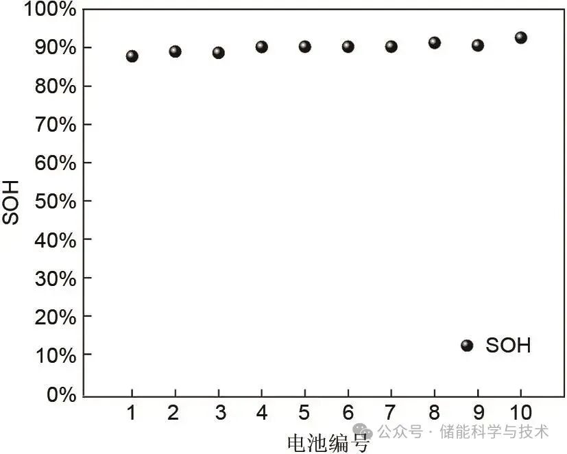 圖7 循環(huán)后各電池的SOH