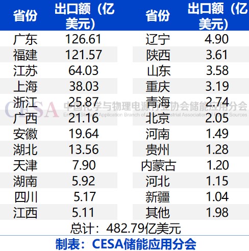 據(jù)CESA儲(chǔ)能應(yīng)用分會(huì)不完全統(tǒng)計(jì),2025年1-8月,廣東成為中國(guó)鋰離子電池出口產(chǎn)品的最大來(lái)源地,出口金額為126.61億美元,同比增長(zhǎng)39.7%,占中國(guó)鋰離子電池出口額的26.2%。福建位居第二,出口金額為121.57億美元,同比增加17.95%,占比25.2%。江蘇排名第三,出口額為64.03億美元,同比增長(zhǎng)3.81%,占比13.3%。福建、廣東和江蘇三省的鋰離子電池出口額占到全國(guó)鋰離子電池出口額的64.7%。出口金額增幅最大的三個(gè)省分別是湖北、湖南、廣西,出口額分別增長(zhǎng)105.39%、86.13%和80.93%。出口數(shù)量增幅最大的三個(gè)省市分別為廣西、湖南、福建,出口數(shù)量分別增長(zhǎng)了10.97%、46.79%和29.6%。
