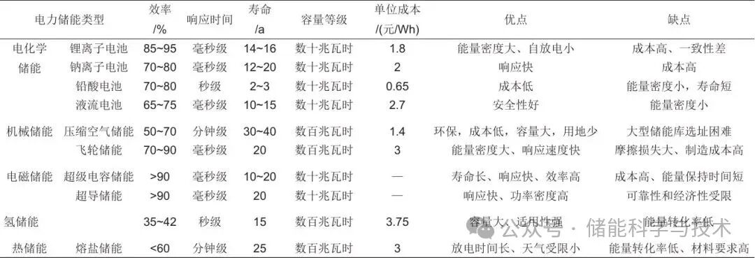 表1 新型電力儲(chǔ)能技術(shù)和經(jīng)濟(jì)指標(biāo)特點(diǎn)