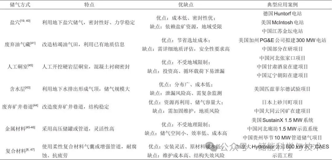 2.3 壓縮空氣儲(chǔ)能主要儲(chǔ)氣方式