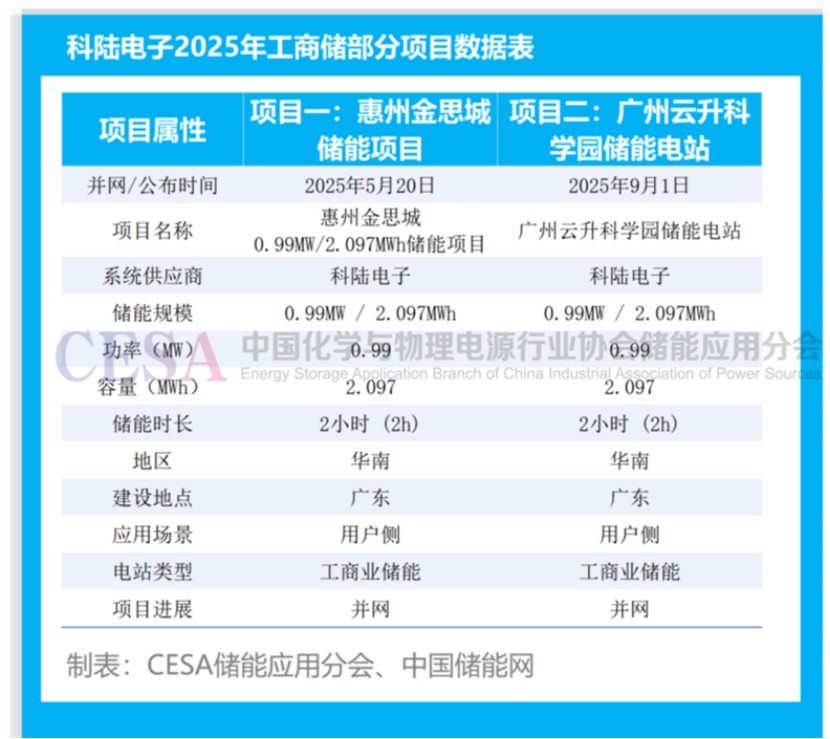 據(jù)CESA儲(chǔ)能應(yīng)用分會(huì)不完全統(tǒng)計(jì):科陸電子2025年規(guī)劃部署了兩個(gè)工商業(yè)項(xiàng)目,兩個(gè)都是落戶廣東,配置都為0.99MW/2.097MWh。