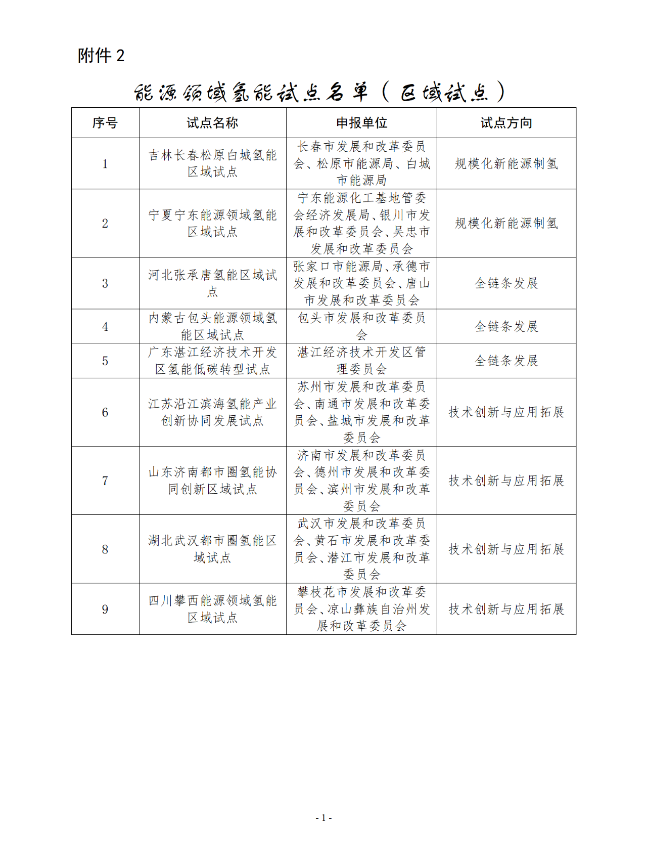 2.能源領(lǐng)域氫能試點(diǎn)名單(區(qū)域試點(diǎn))