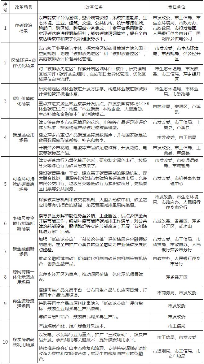 試點(diǎn)改革舉措清單(“萍碳+”十大場(chǎng)景)