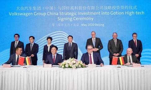 2020年 5 月 28 日,大眾汽車集團(tuán)(中國)與國軒高科在北京簽署戰(zhàn)略投資協(xié)議,大眾宣布以約 11 億歐元(折合人民幣約 87 億元)認(rèn)購其約 26% 的股權(quán)。這個轟動業(yè)界的新聞引發(fā)全球關(guān)注的是,它開創(chuàng)了“外資整車巨頭直接戰(zhàn)略投資中國本土電池企業(yè)”的行業(yè)先河。歷經(jīng)近一年審批程序的定增交易在 2020年12月完成交割。從此,大眾中國成為國軒高科第一大股東;