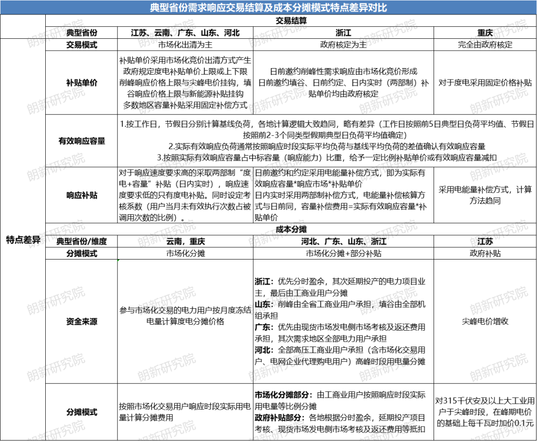表1 典型省份需求響應(yīng)交易結(jié)算及成本分?jǐn)偰J教攸c差異對比
