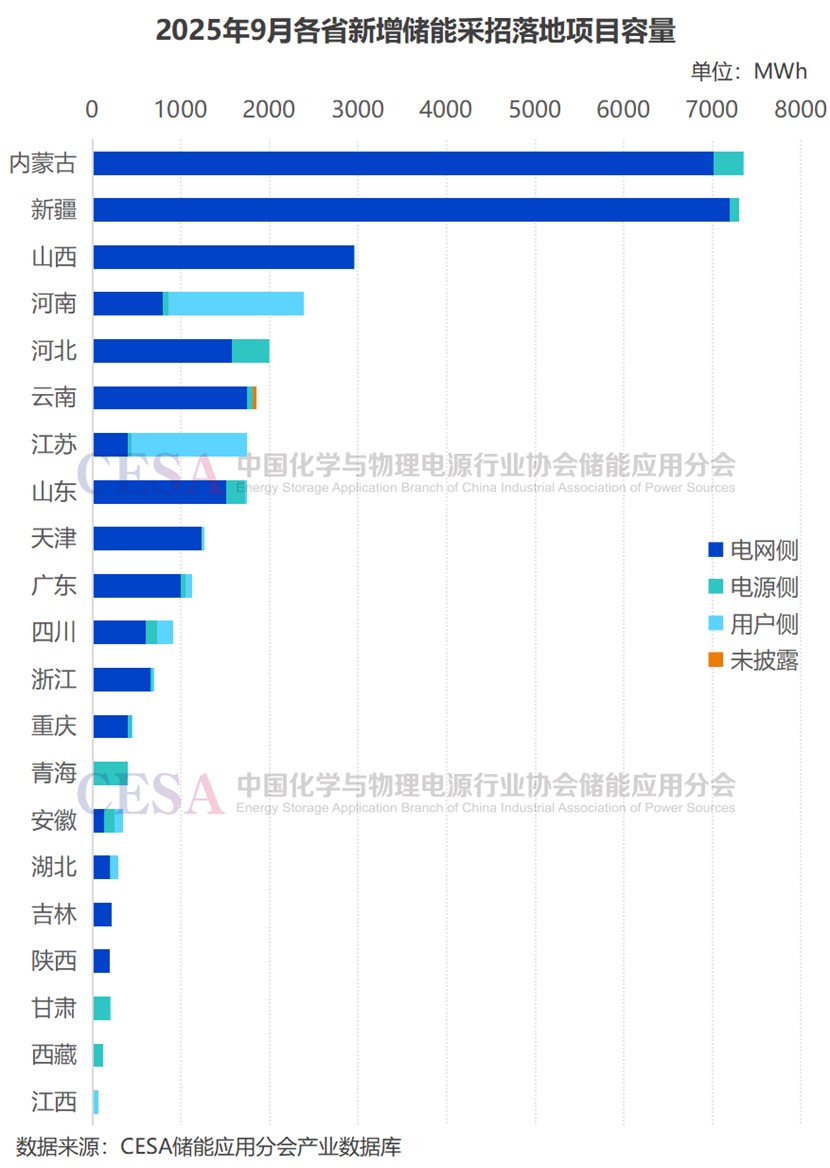 9月新增中標(biāo):內(nèi)蒙古、新疆領(lǐng)跑全國,用戶側(cè)超過電源側(cè)