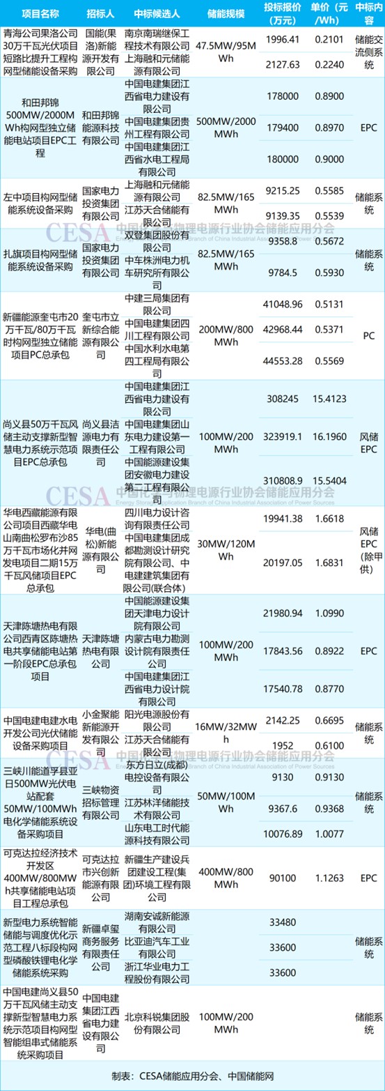 表 2025年9月構(gòu)網(wǎng)型儲能新增采招落地項目價格及中標(biāo)詳情