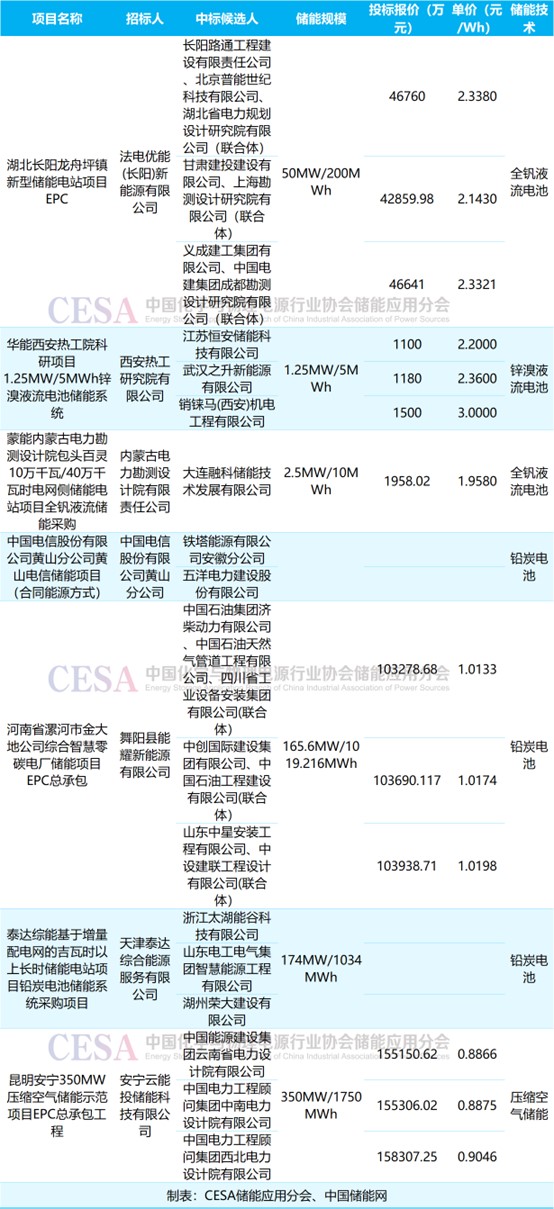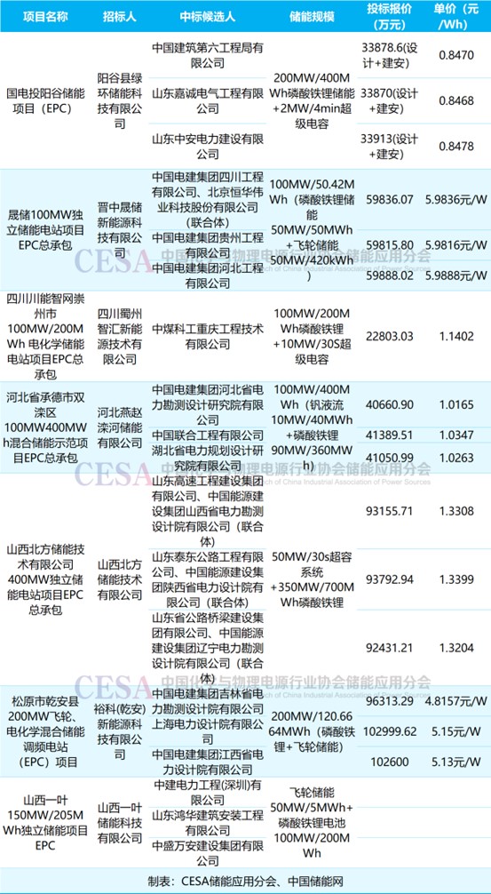 表 2025年9月混合儲能新增采招落地項目價格及中標(biāo)詳情
