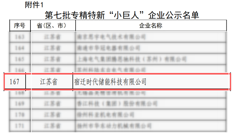 是國家為鼓勵(lì)科技創(chuàng)新企業(yè)走專業(yè)化、精細(xì)化、特色化、新穎化發(fā)展道路而設(shè)立的重要榮譽(yù),代表企業(yè)在細(xì)分領(lǐng)域具備卓越實(shí)力和未來潛力。此次入選,既是對宿遷時(shí)代儲能持續(xù)精研技術(shù)、專注創(chuàng)新、深耕細(xì)分市場的高度認(rèn)可,更是標(biāo)志著公司在以科技創(chuàng)新驅(qū)動(dòng)高質(zhì)量發(fā)展的道路上邁出了堅(jiān)實(shí)的一步。