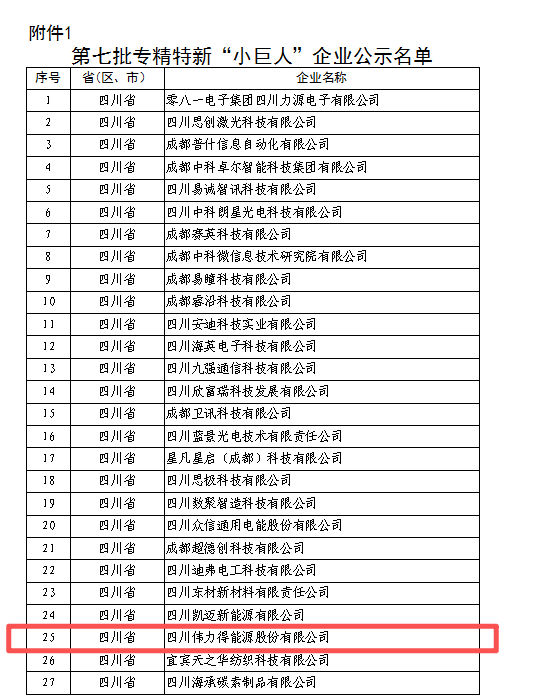 四川偉力得能源股份有限公司憑借在新型儲能“全釩液流電池產(chǎn)業(yè)”發(fā)揮的模范引領(lǐng)作用,以及在加速培育新質(zhì)生產(chǎn)力方面的突出貢獻(xiàn),入選"第七批專精特新“小巨人”企業(yè)"公示名單。