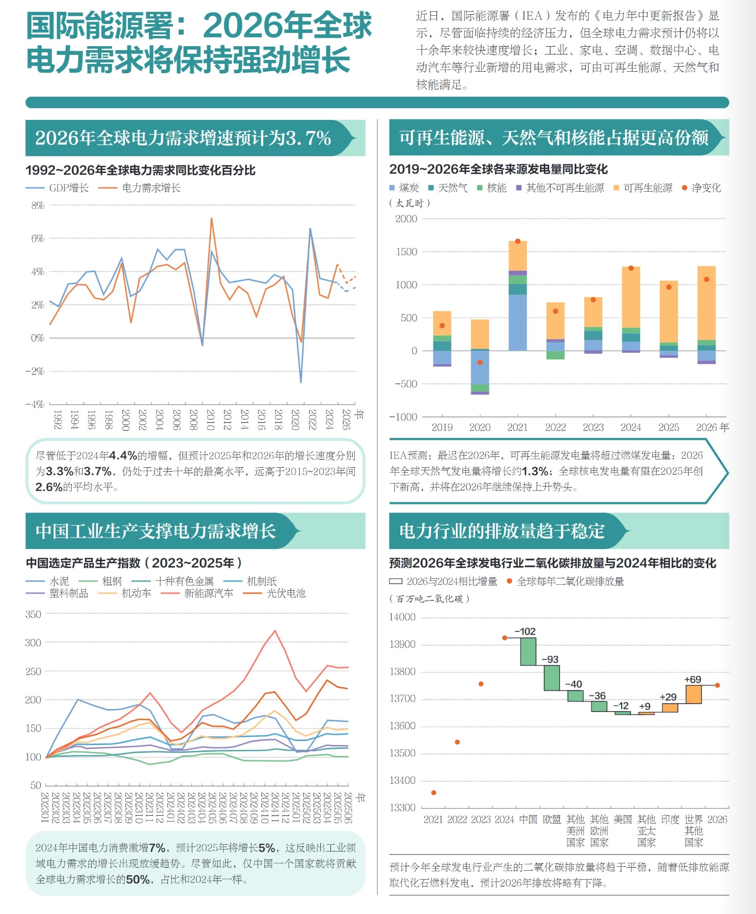 國(guó)際能源署:2026年全球電力需求將保持強(qiáng)勁增長(zhǎng)