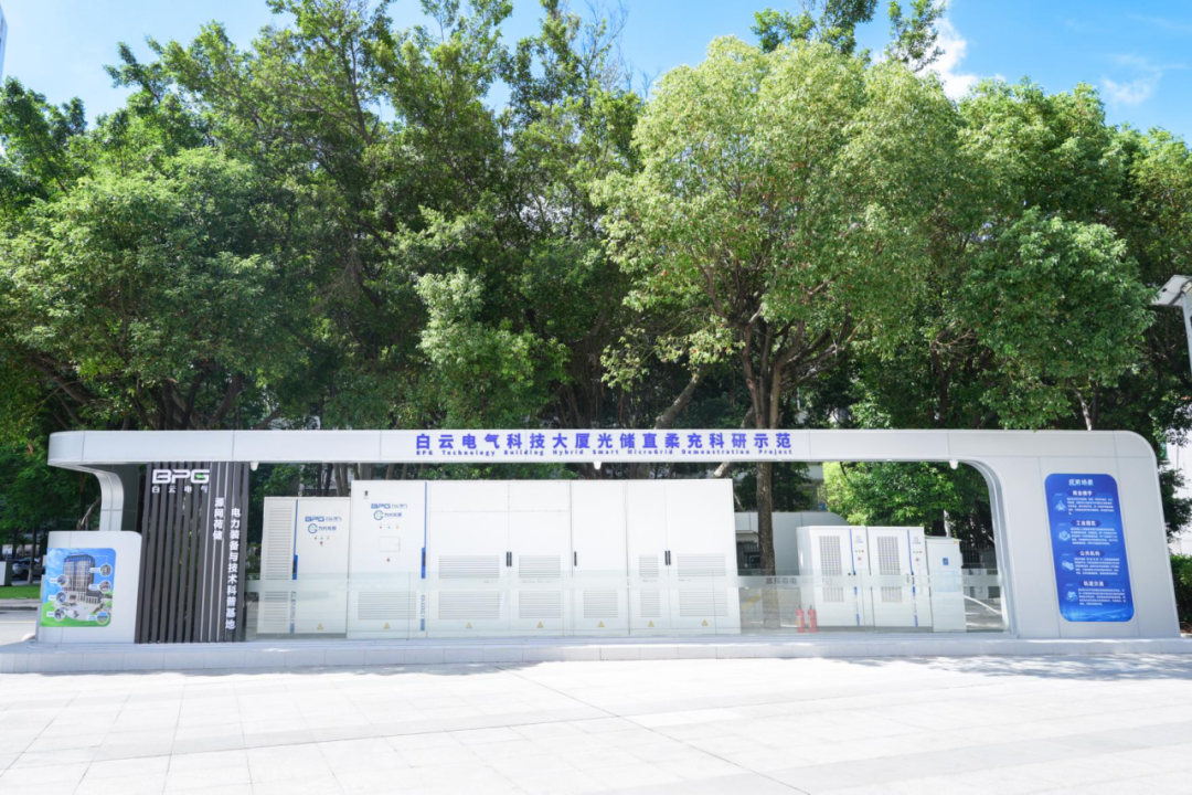 該項(xiàng)目以白云電氣科技大廈為核心應(yīng)用場(chǎng)景,基于固態(tài)變壓器構(gòu)造直流750V母線,將柔性充電堆、光伏、儲(chǔ)能等通過直流母線接入,成功建成集固態(tài)變壓器(SST)、光伏、第三代儲(chǔ)能、超充、柔性充電樁、V2G 車網(wǎng)互動(dòng)、系統(tǒng)仿真、能源管理、數(shù)字孿生平臺(tái)于一體的綜合示范站,成功打造了為光能源在華南地區(qū)的以固態(tài)變壓器(SST)為核心的綜合能源標(biāo)桿典型項(xiàng)目案例。